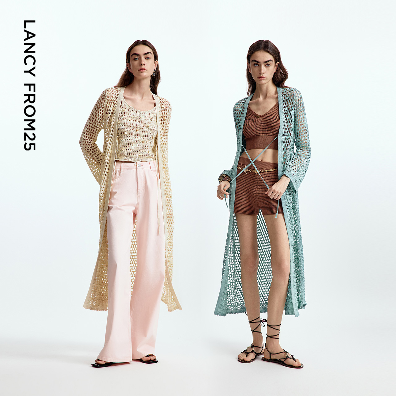 朗姿奥莱 度假风罩衫 漾25系列 镂空毛针织衫 202 朗姿气质开衫