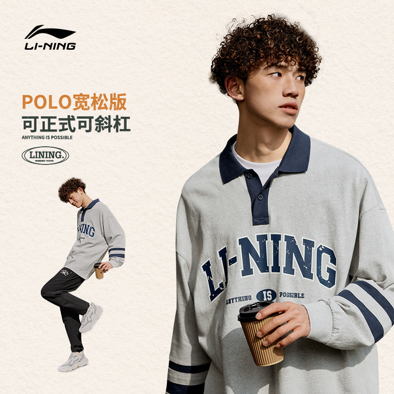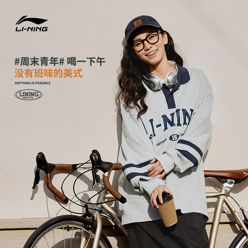 加绒加厚宽松早秋运动上衣男士 李宁卫衣女秋冬新款 情侣圆领套头衫