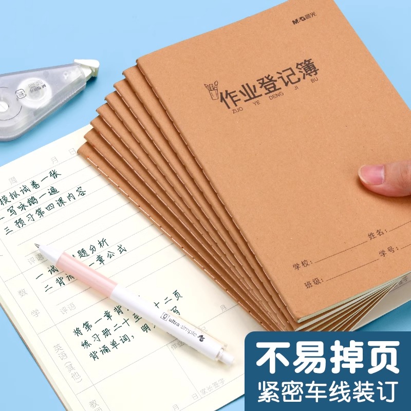 晨光作业登记本小学生专用记牛皮纸作业本抄作业本一年级二三年级小学家庭作业记录本载计划小本子记事备忘本