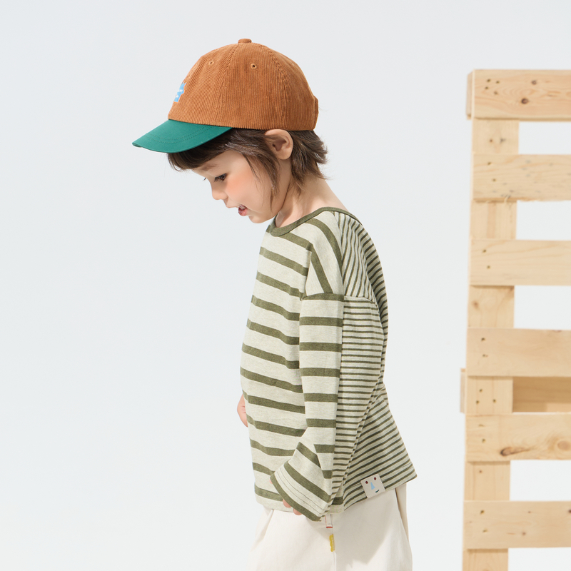 儿童T恤男女童洋气条纹前后两面穿长袖 papa爬爬秋季 上衣 新品