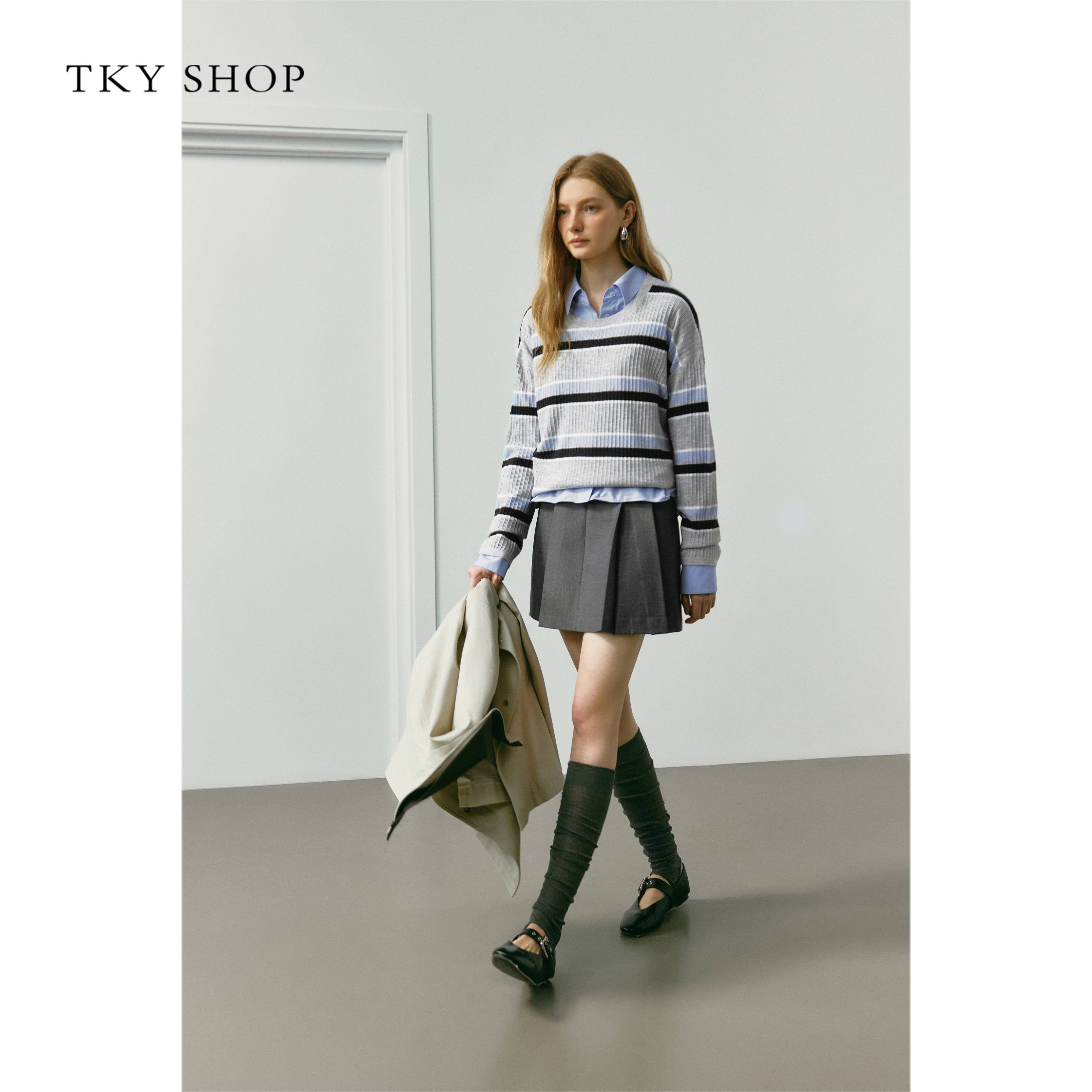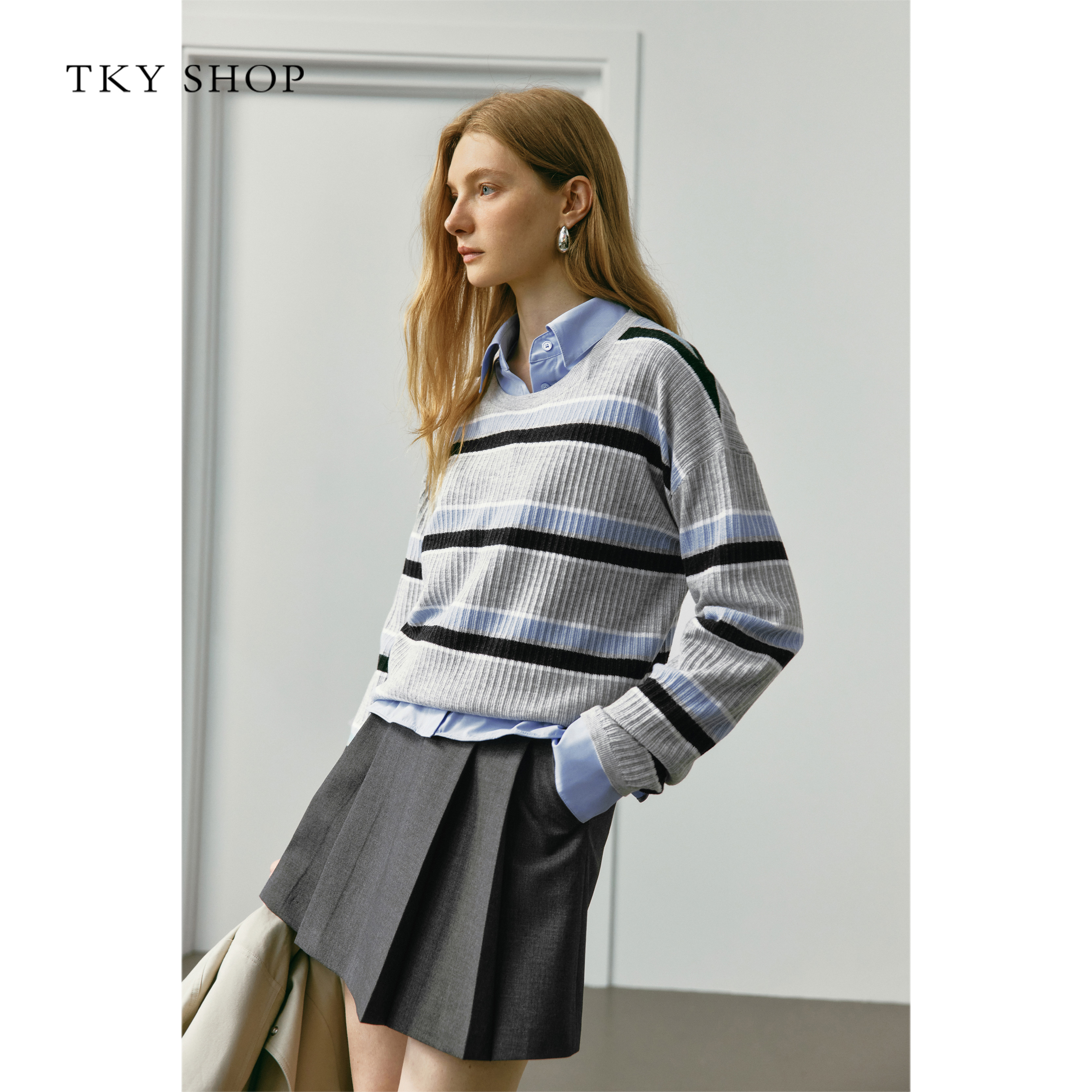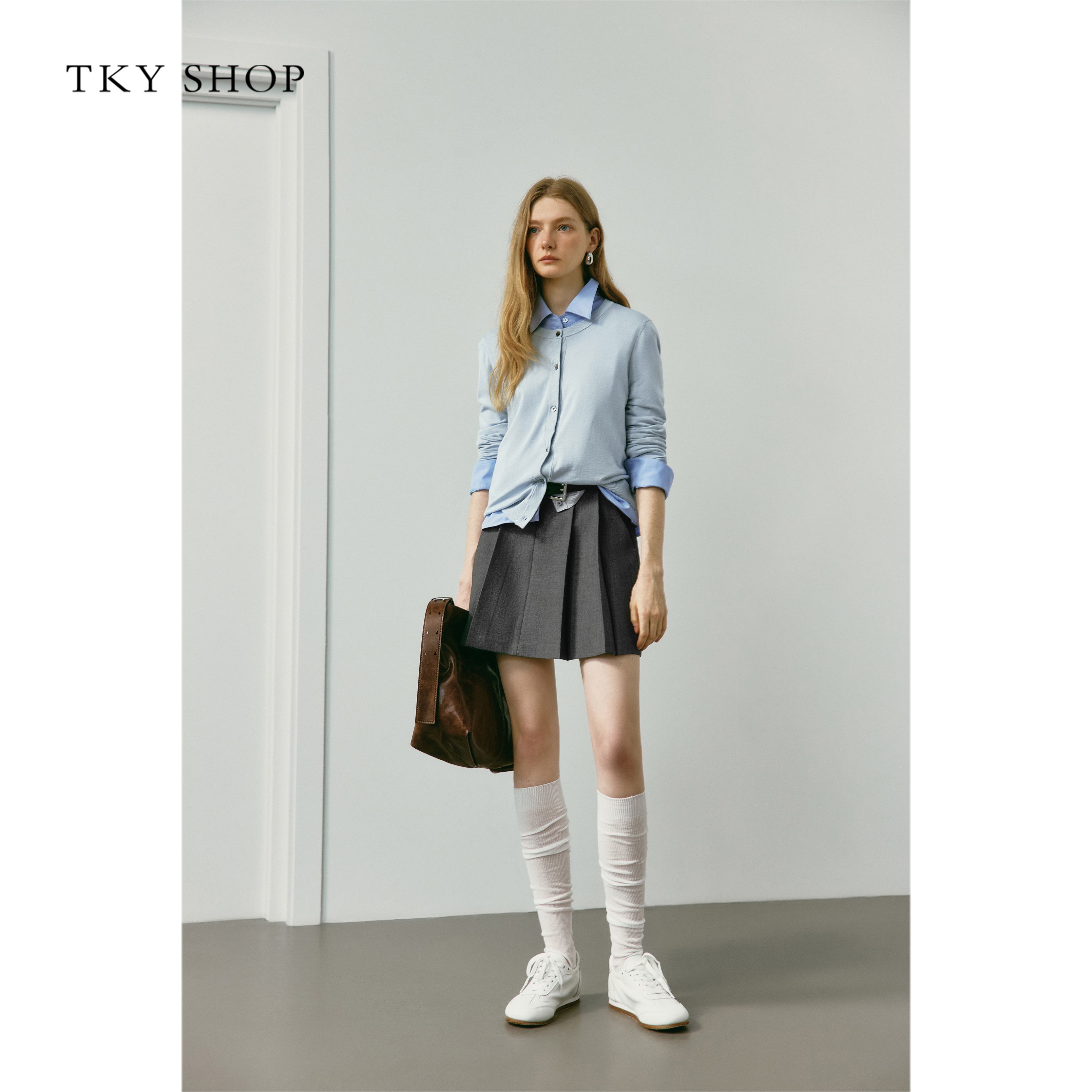裙女秋冬半身裙高腰休闲大摆a字过膝中长裙 STYLE灰色百褶西装