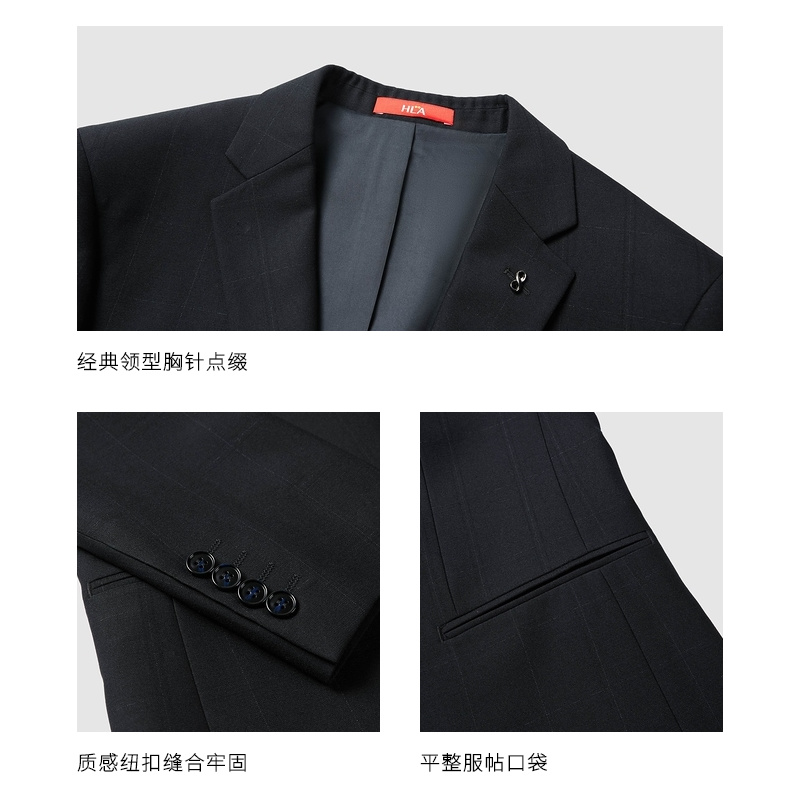 套西男 男商务隐形弹力松紧腰修身 HLA 海澜之家隐格三件套礼服套装