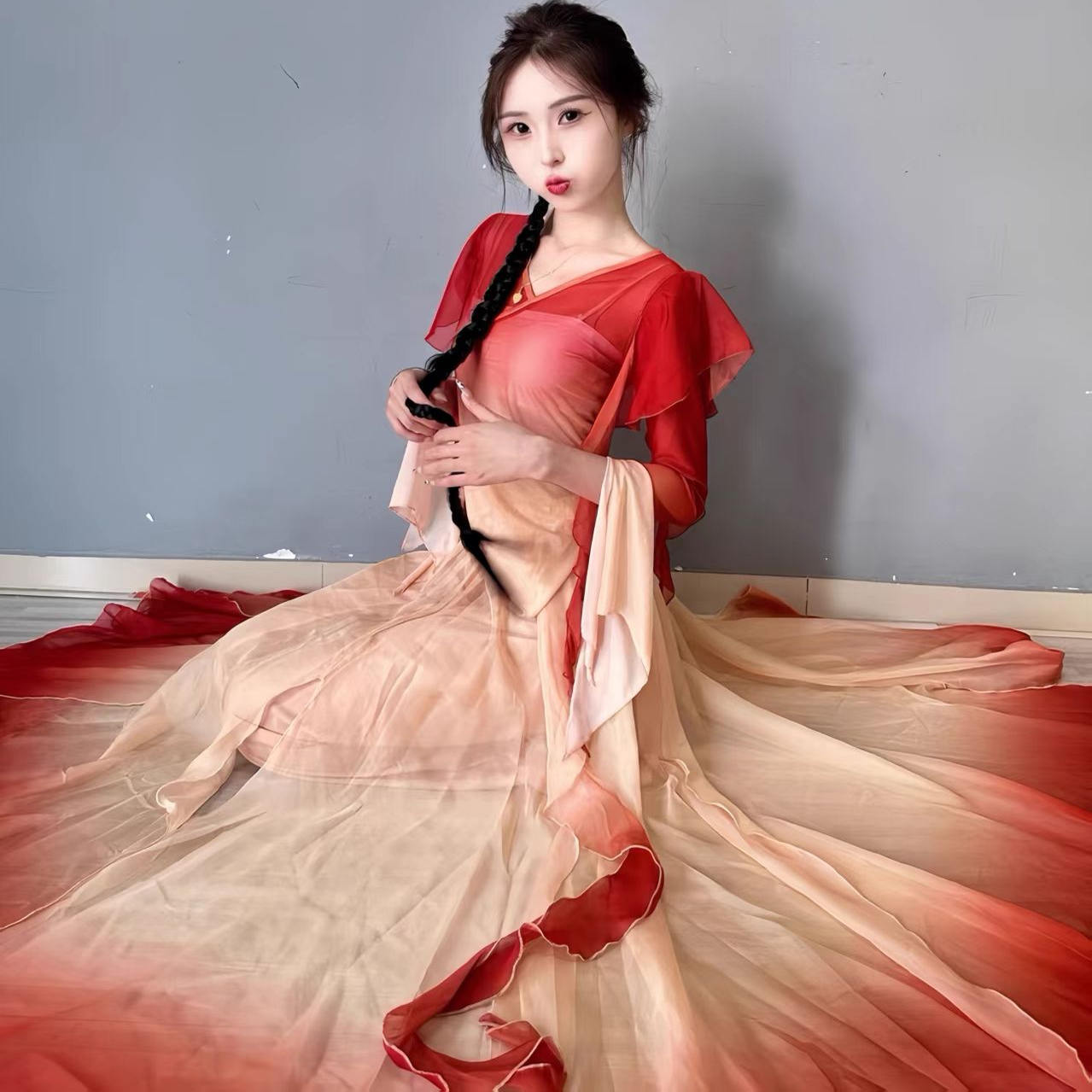 新款 女 古典舞服纱衣飘逸舞蹈服中国舞演出服仙气练功服考级套装