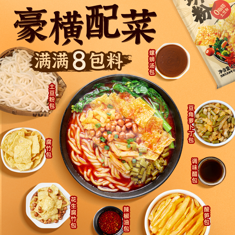 3袋 粗米线436g 宛禾螺蛳粉土豆粉版 柳州正宗螺狮粉速食酸辣粉袋装