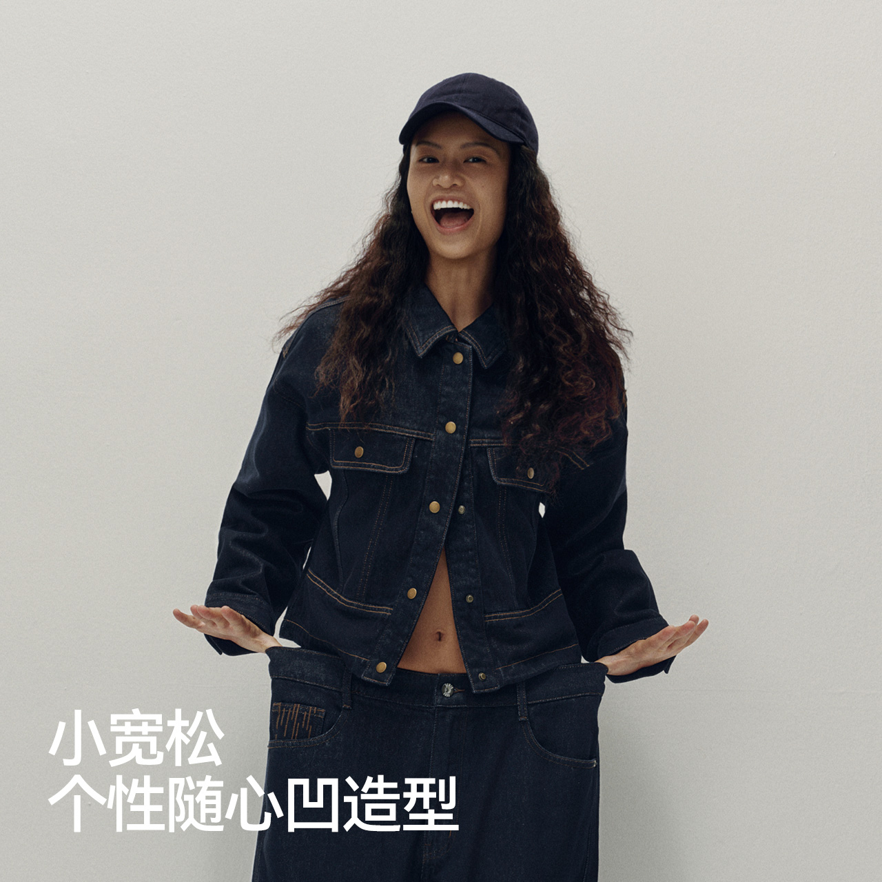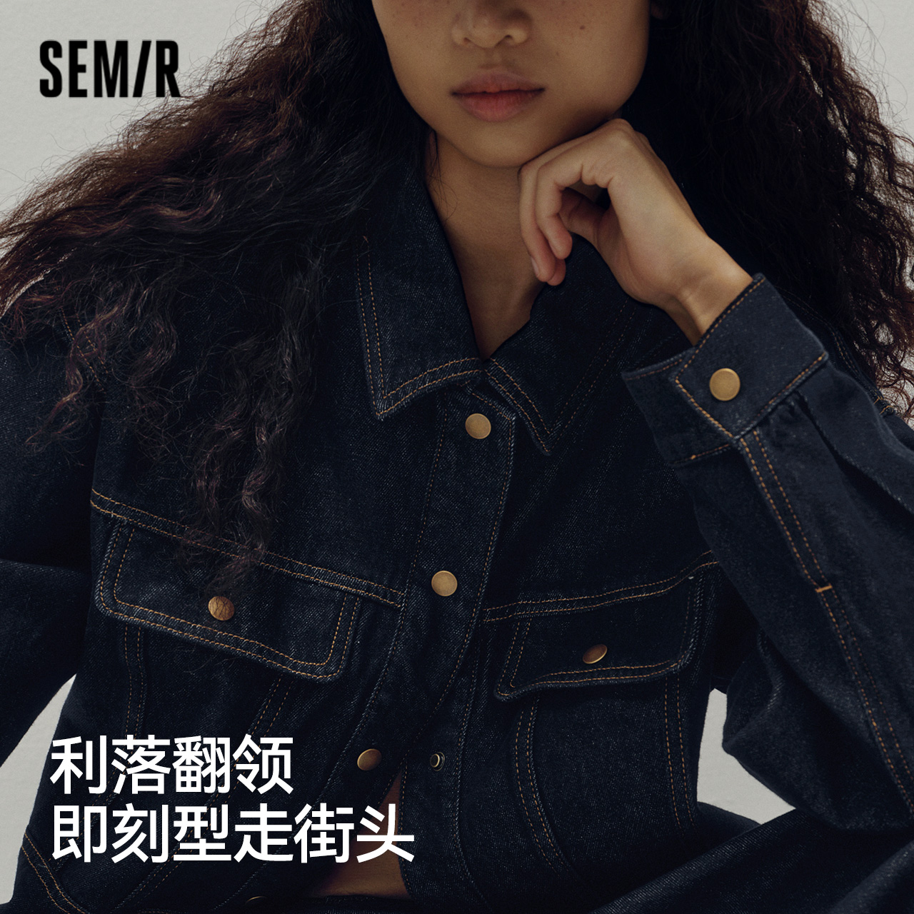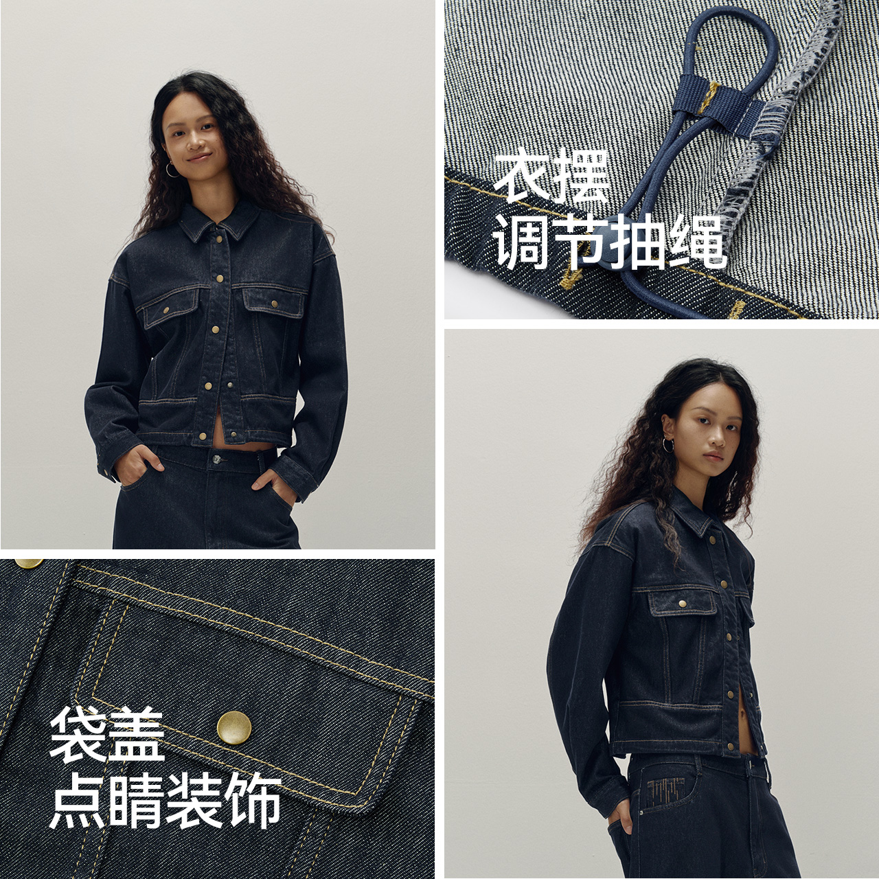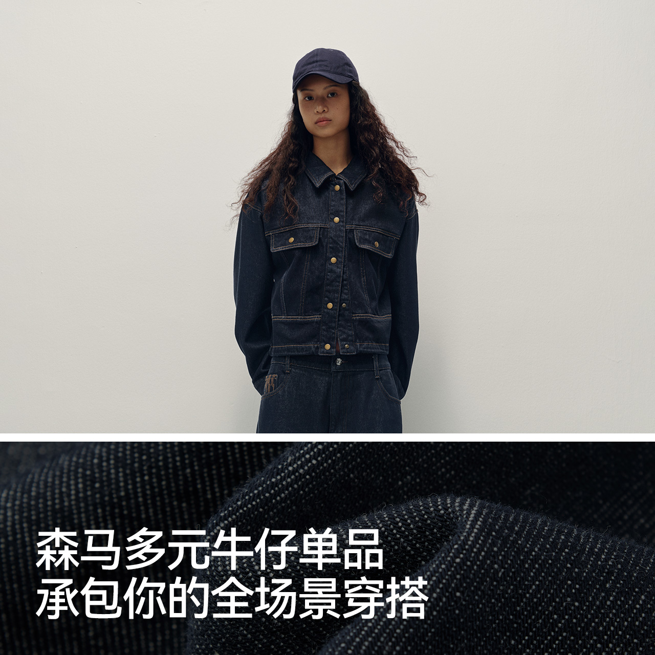 2025新款 森马牛仔外套女短款 秋抽绳夹克小个子 商场同款 森柔牛仔