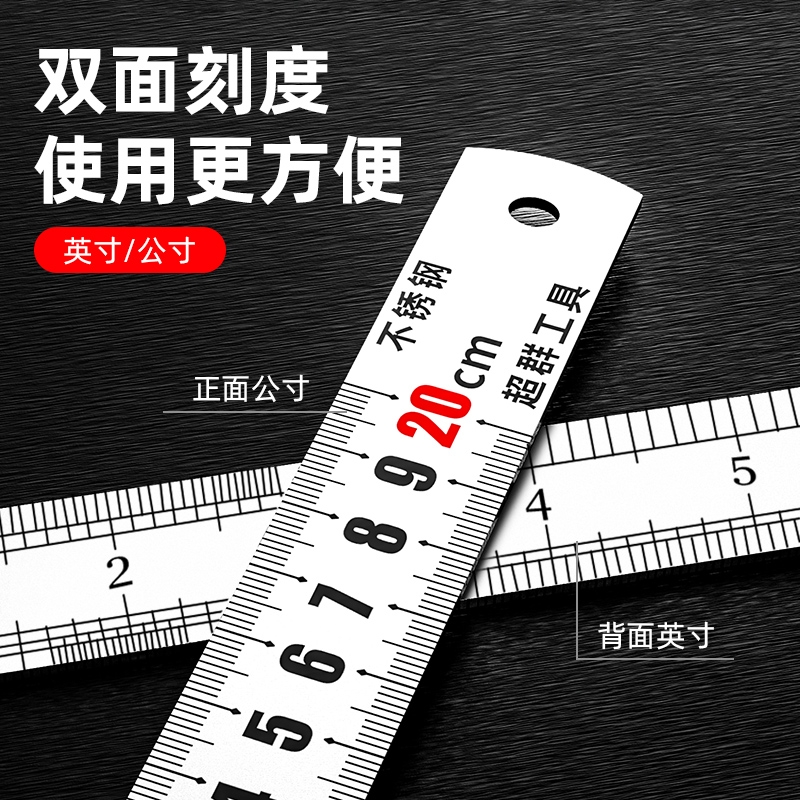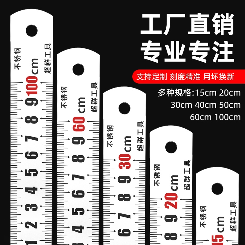 刻度尺钢尺1米不锈钢直尺加厚钢板尺20cm30cm50601.5米钢直尺测量