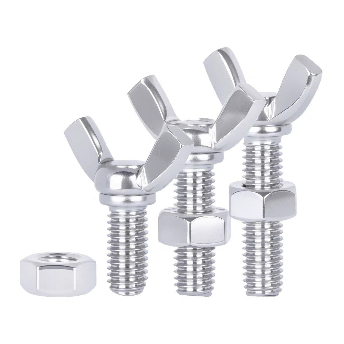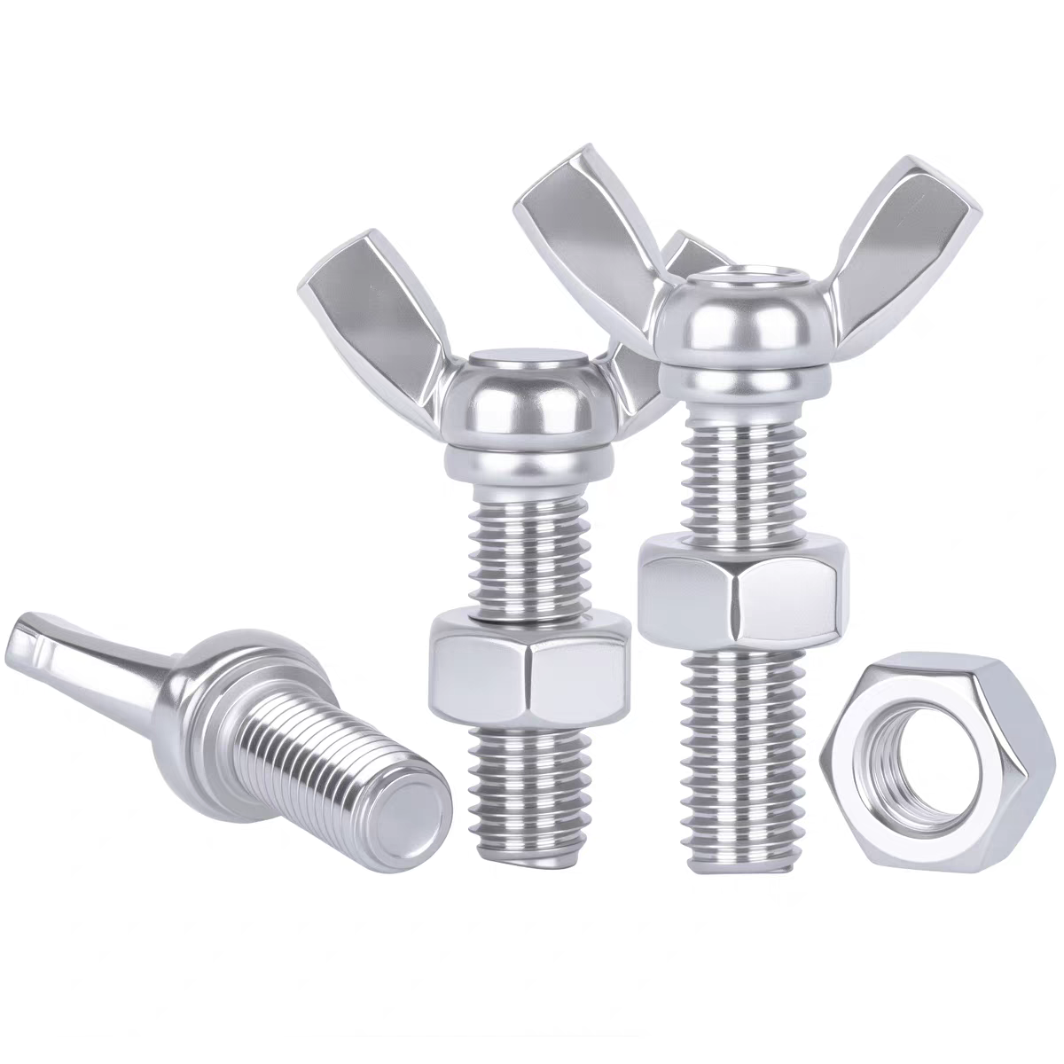 201不锈钢蝶形螺丝二组合螺栓羊角手拧螺钉六角螺母套装 304 316