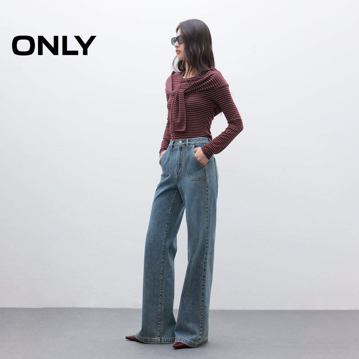提臀约克线剪裁高腰显瘦喇叭长裤 新款 ONLY2025秋季 牛仔裤 神裤