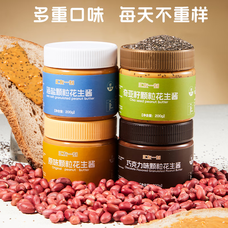 汇友一刻纯花生酱海盐颗粒巧克力花生酱三明治面包涂抹酱拌面麻酱