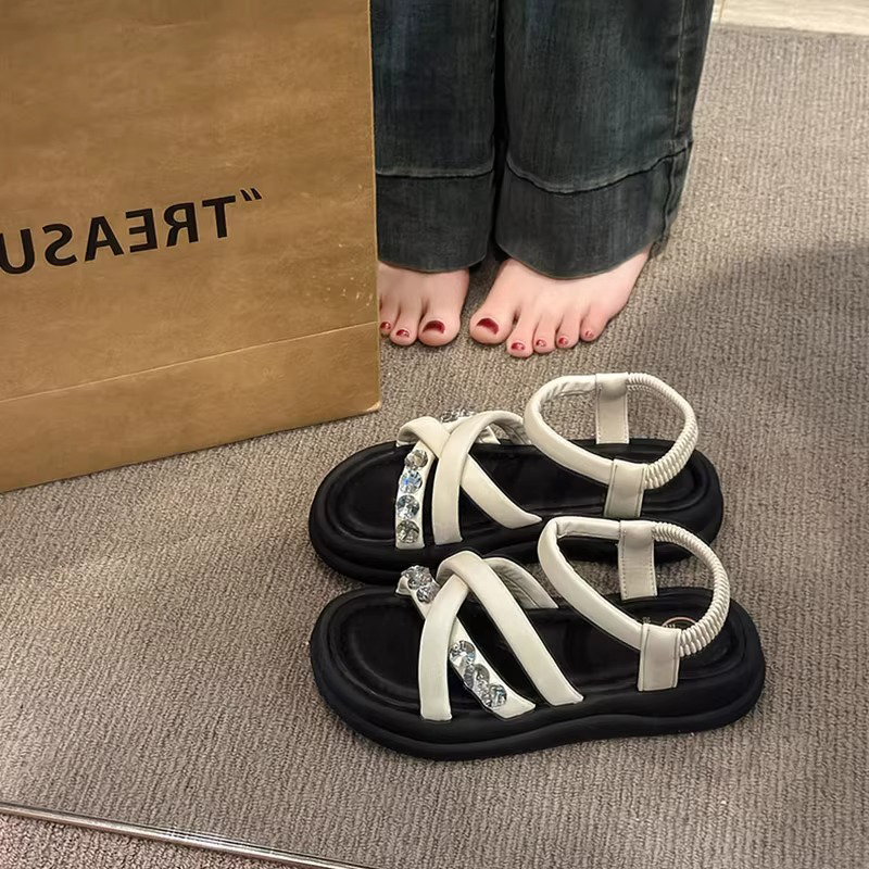 懒人时尚 外出厚底休闲沙滩凉鞋 孕妇一字拖 女夏外穿2025新款 凉拖鞋