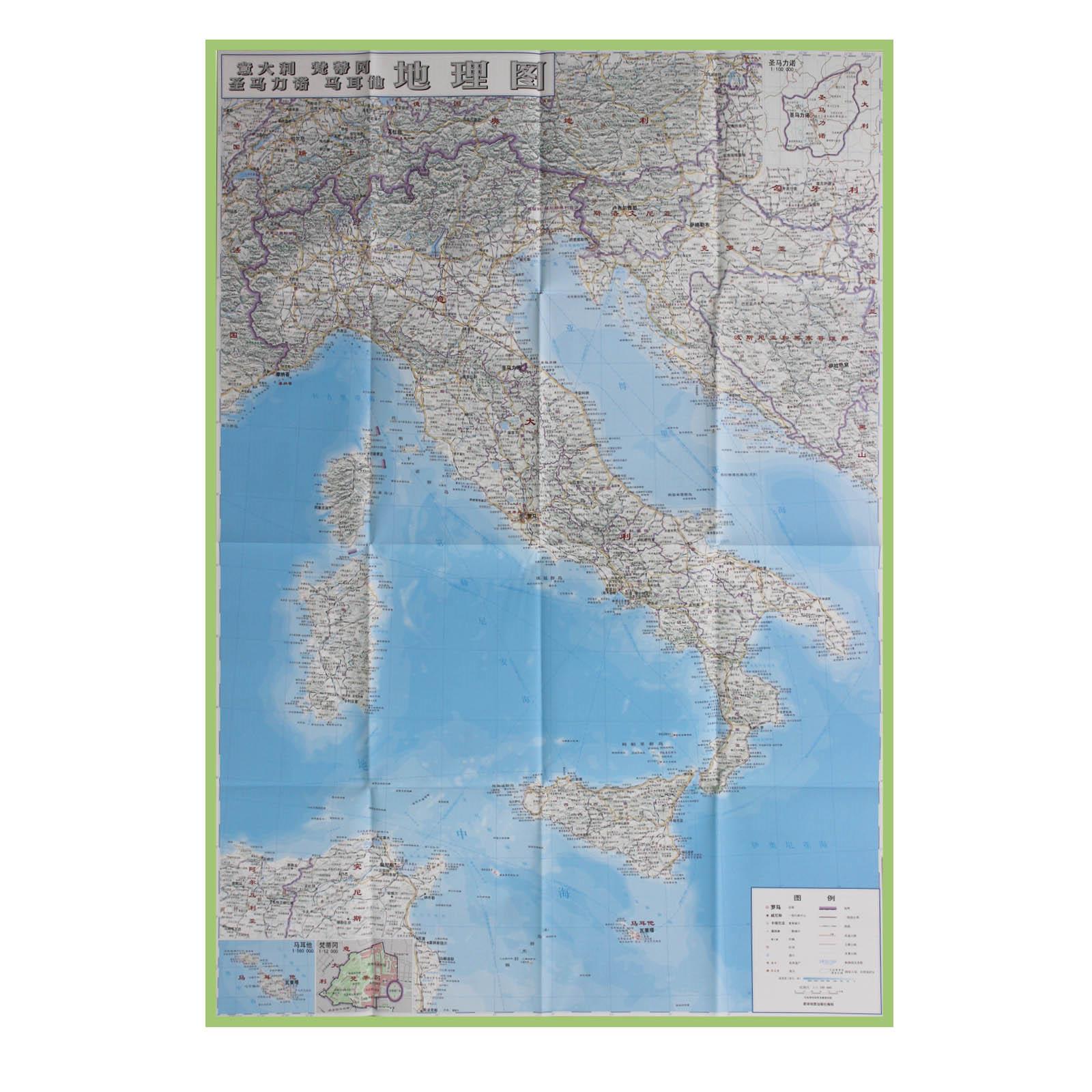 世界分国地理图 双面印刷 社 1240x890mm 地理百科 星球地图出版 大图 意大利梵蒂冈圣马力诺马耳他地图 意大利地图 折叠袋装