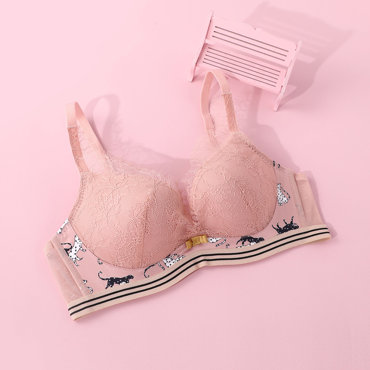 安莉芳官方奥莱芬狄诗豹子印花睫毛蕾丝文胸无钢圈内衣 聚挺杯