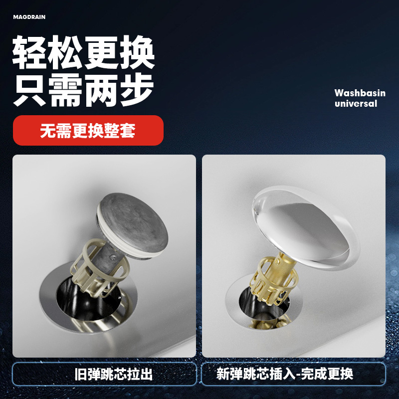 卫生间洗手盆漏水塞过滤防臭洗脸盆弹跳芯下水器配件按压式 面盆用