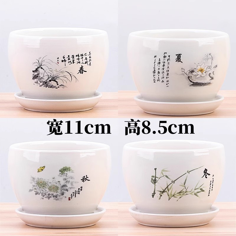 花盆陶瓷白色轻奢简约特价 清仓大号带托盘家用绿萝吊兰多肉小花盆