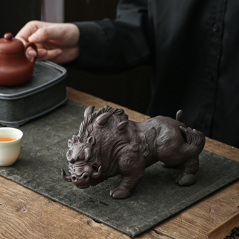 宇轩 紫砂茶宠霸气猪刚鬣手工可养财大气粗野猪茶盘办公家居摆件