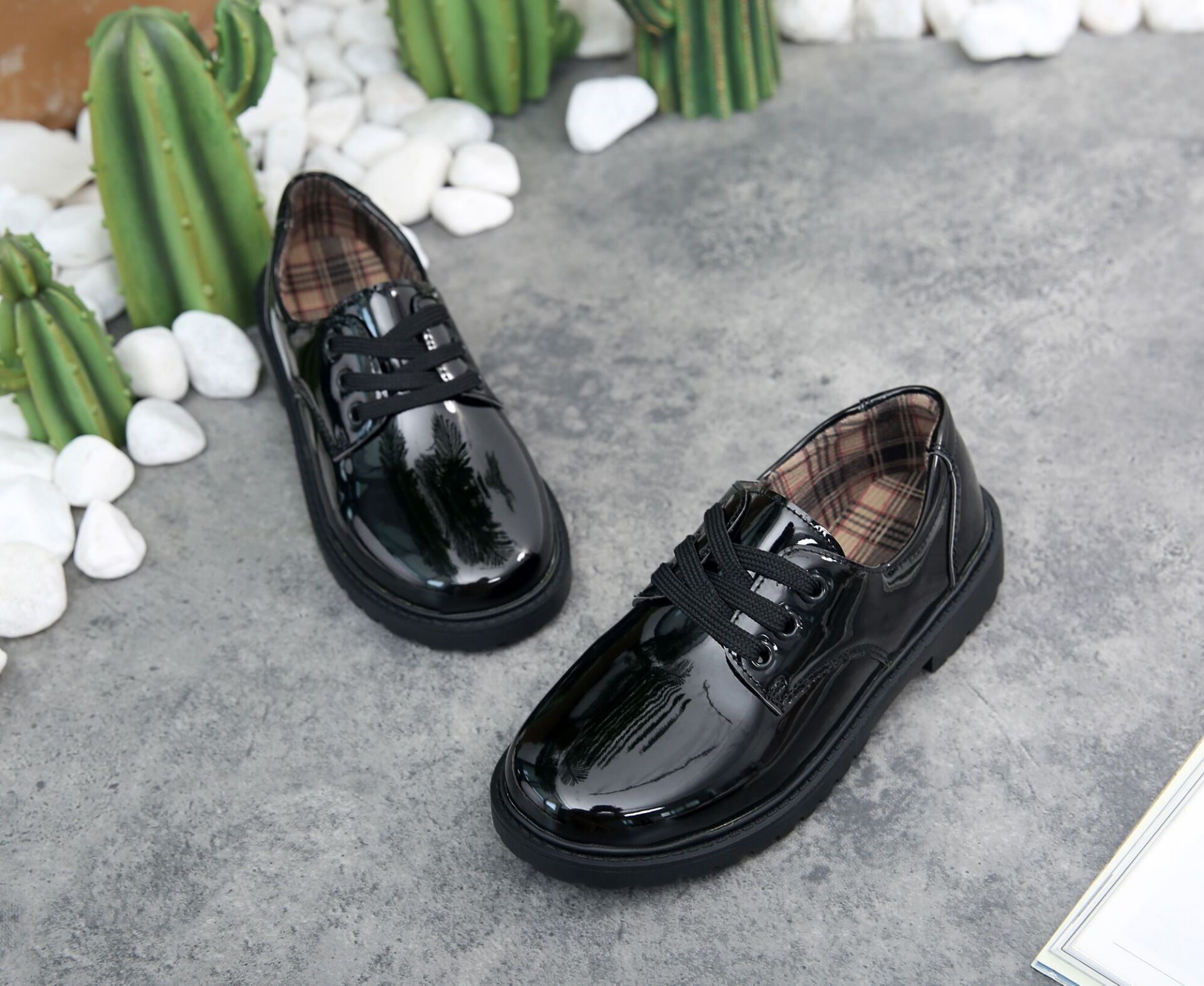 男女演讲表演亮皮黑白皮鞋 儿童主持大合唱团演出鞋 学生英伦风皮鞋