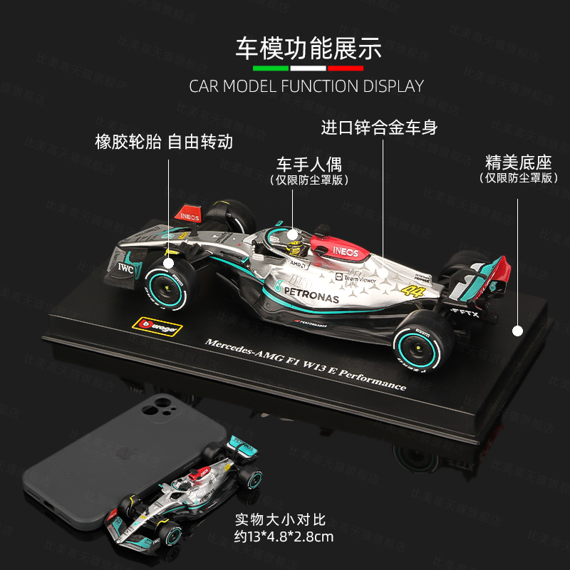 汉密尔顿 F1赛车模型W13仿真合金车模 比美高1 43奔驰2022方程式