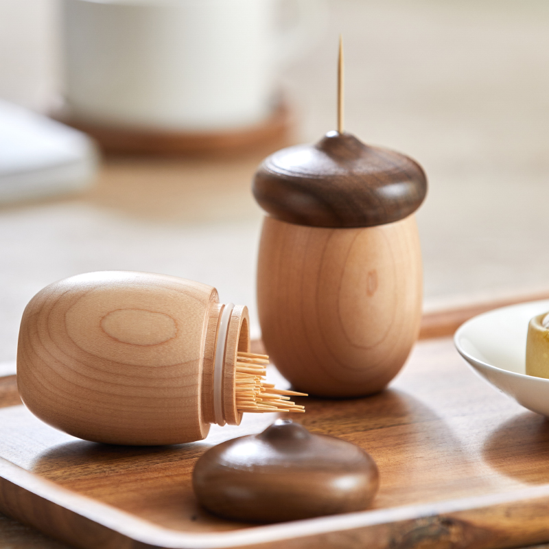 胡桃木实木牙签筒家用创意可爱卡通橡果牙签罐便携简约牙签收纳盒