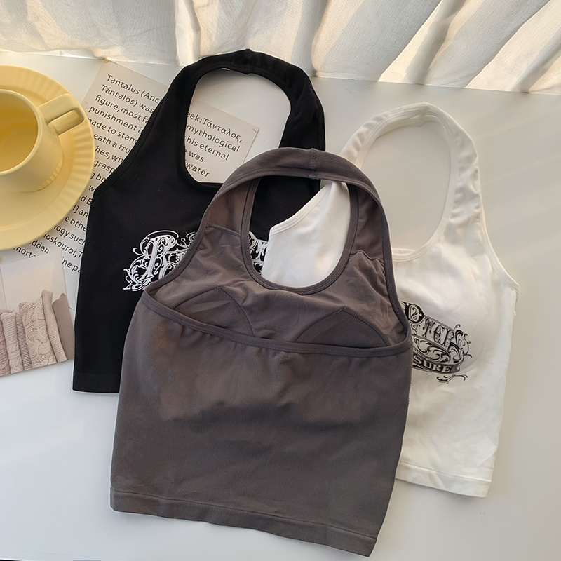 秋冬外穿带胸垫运动上衣潮 内搭打底衫 白色吊带背心女修身 显瘦短款