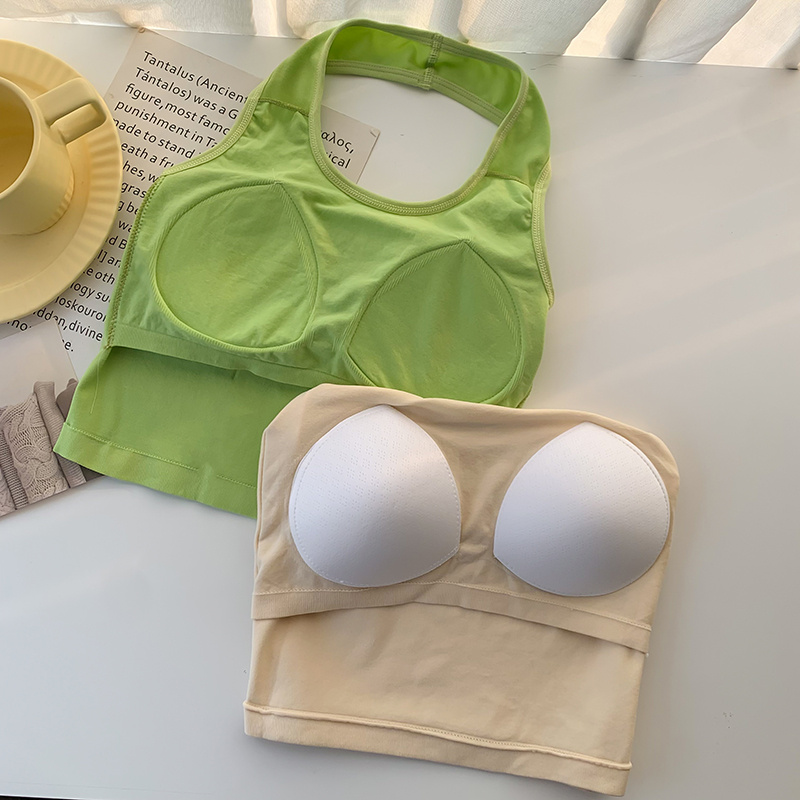 半练打底背心女夏外穿带胸垫美背文胸一体式 内衣白色吊带无痕内搭