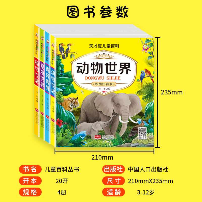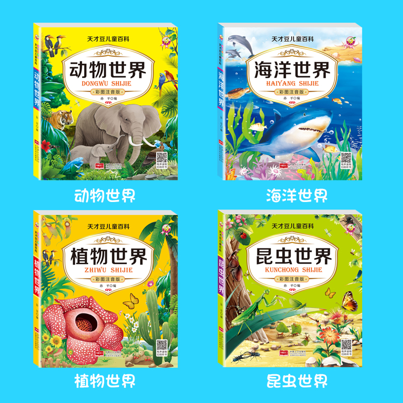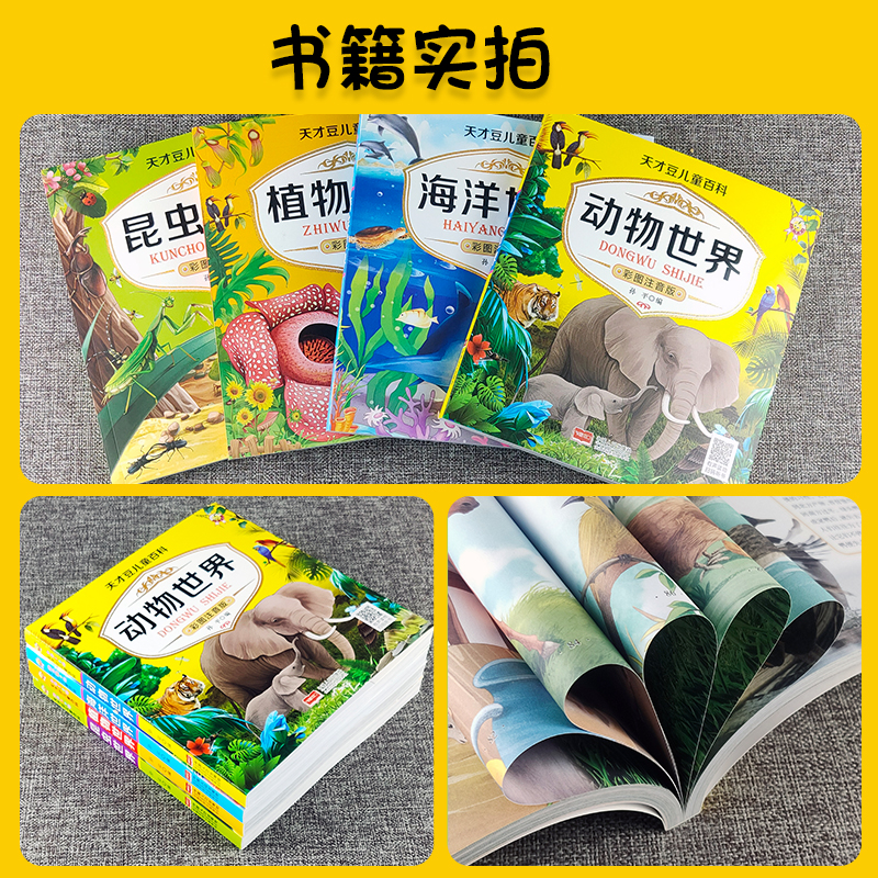 幼儿科普类书籍3 8岁少儿海洋生物植物认知书二年级绘 小学生一年级阅读课外书必读 RH动物世界大百科儿童百科全书全套4册注音版