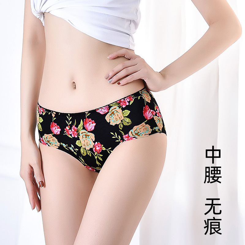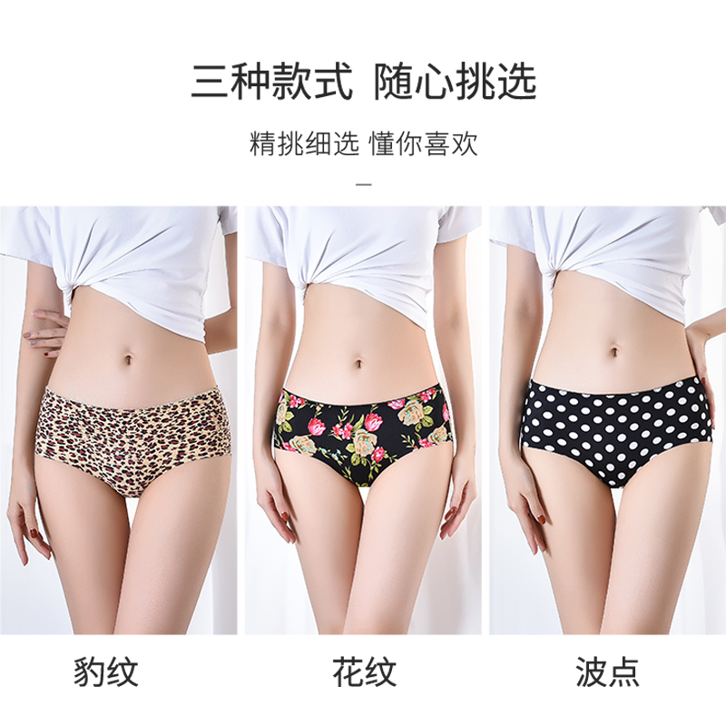 舒适少女士薄 头性惑冰丝无痕底裤 日系少女印花内裤 女纯棉裆中腰裤