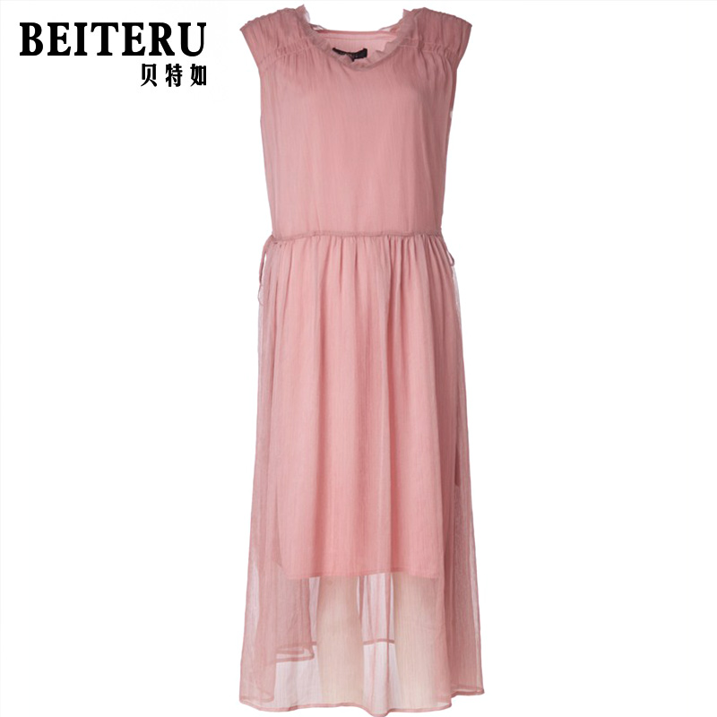 裙子YQ 雪纺连衣裙女长款 贝特如夏新款 纯色V领气质年轻妈妈装