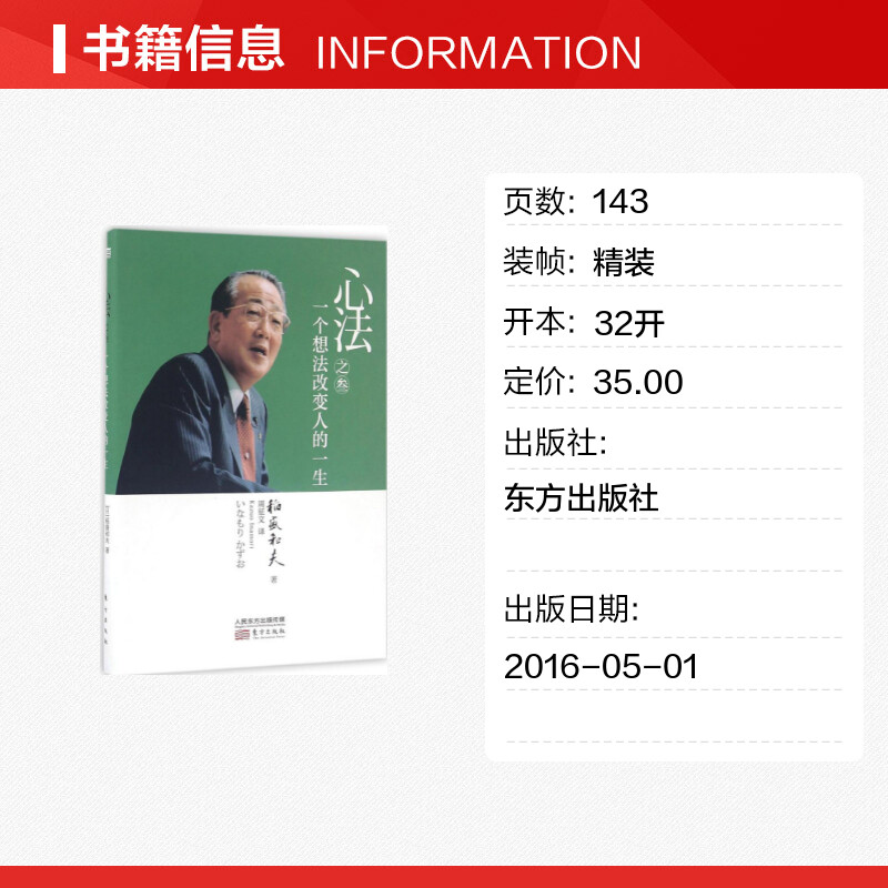 日 社 东方出版 励志经管 一个想法改变人 一生 励志 著;周征文 稻盛和夫 图书籍 心法之叁 译 新华书店正版 著