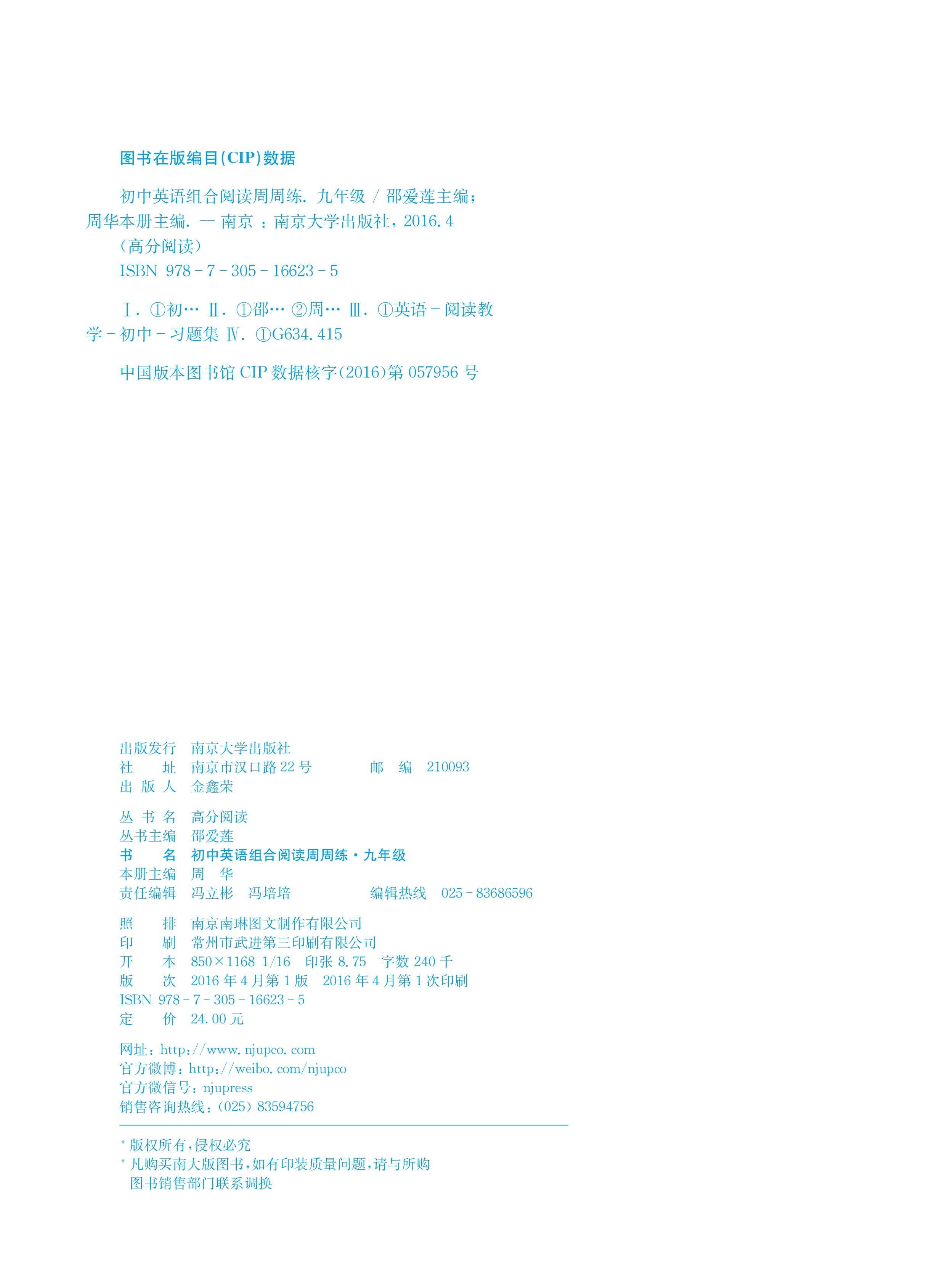 高分阅读初中英语组合阅读周周练 新华正版 南大教辅 中学教辅初中英语阅读训练完形填空阅读理解GX阅读 9年级初三全一册 九年级
