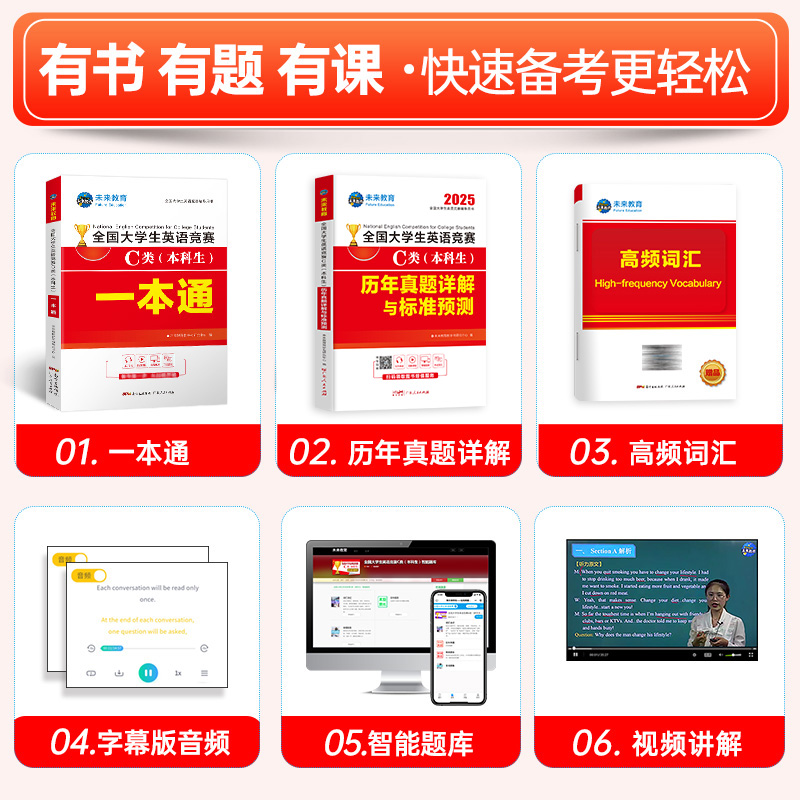 未来教育备考2026年全国大学生英语竞赛C类一本通教材大学生英语竞赛c类初赛决赛历年真题试卷含2024试题听力词汇语法大英赛c类