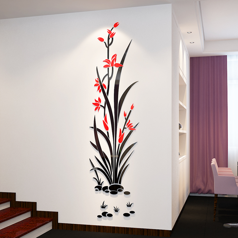 墨花创意水晶亚克力3d立体墙贴画玄关客厅卧室电视背景墙贴纸装 饰