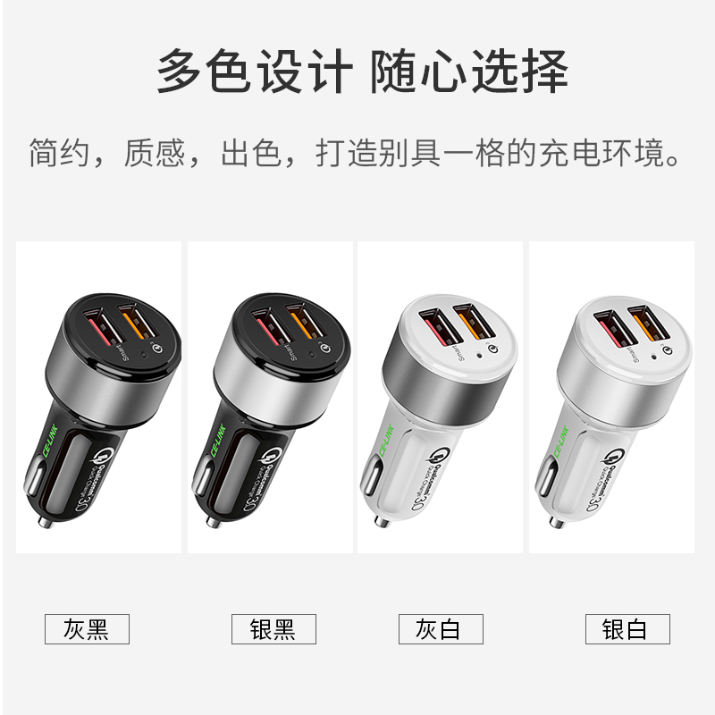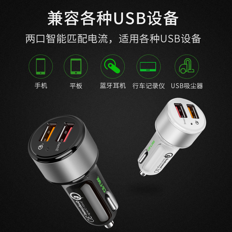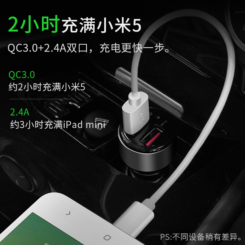 车载充电器QC3.0车充手机平板快速充一拖二2口双USB点烟器插头适用于苹果小米8mix2s华为荣耀10快充24V2.4A