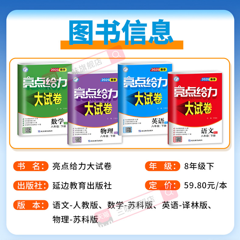 含期中期末试卷及答案译林 中学教辅初二同步练习试卷苏教版 2025春亮点给力大试卷八年级下册语文数学英语物理4本套装 江苏版