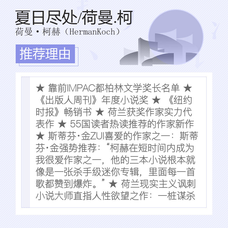 译 新华 荷曼·柯赫 社 湖南文艺出版 外国文学小说畅销书籍正版 尹岩松 著 HermanKoch 荷曼.柯赫 夏日尽处
