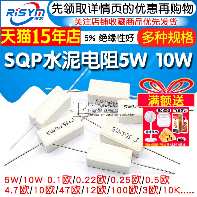 件0.33R 10R 0.22R 0.5R 100R欧姆 0.1R 1W2W5W碳膜5%色环电阻器元