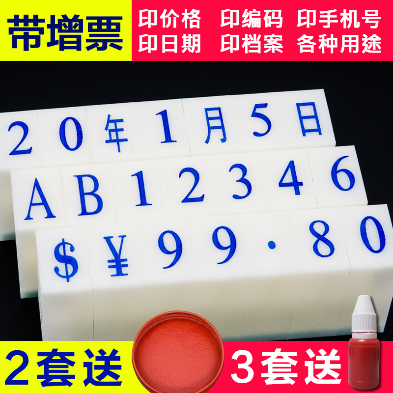 亚信数字印章烟草价格标签印章自由组合章数字章可调活字编码 标签符号英文字母日期印章印超市商超标价签印章