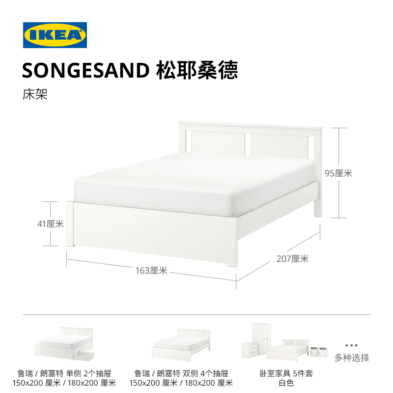 IKEA宜家SONGESAND松耶桑德简约卧室储物收纳双人床 双11预售