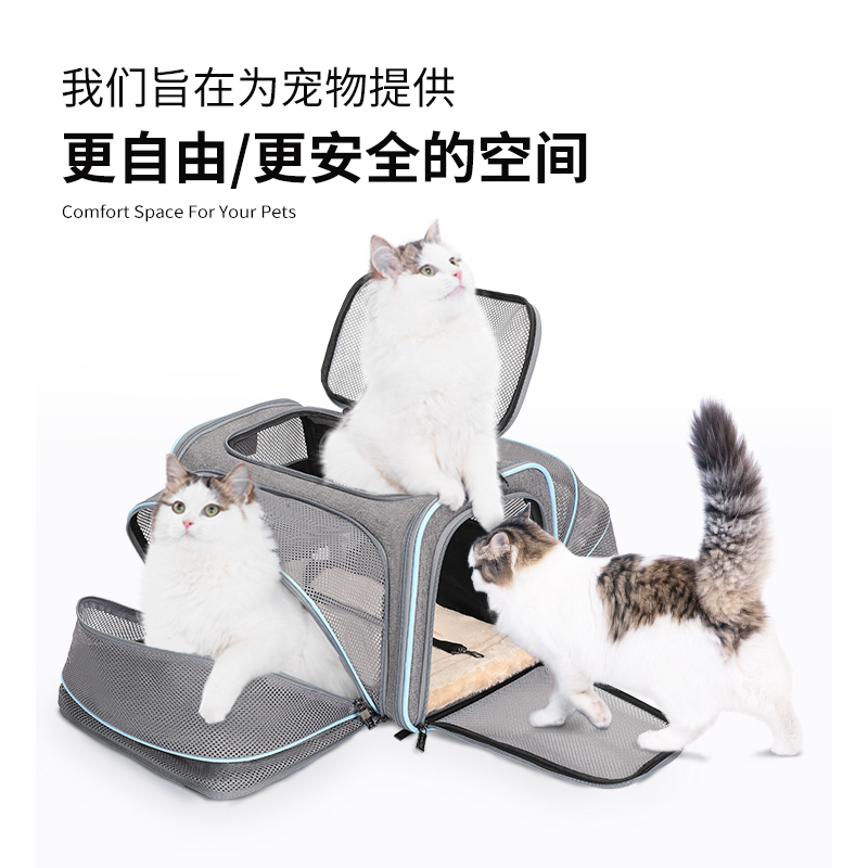 宠适PETSFIT猫咪外出大空间航空宠物软包猫包便携手提透气上飞机