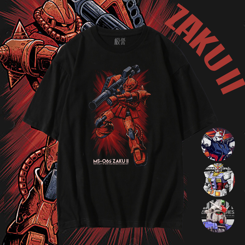 极誉日系复古机战风纯棉T恤男扎古动漫宽松大码 夏潮 短袖