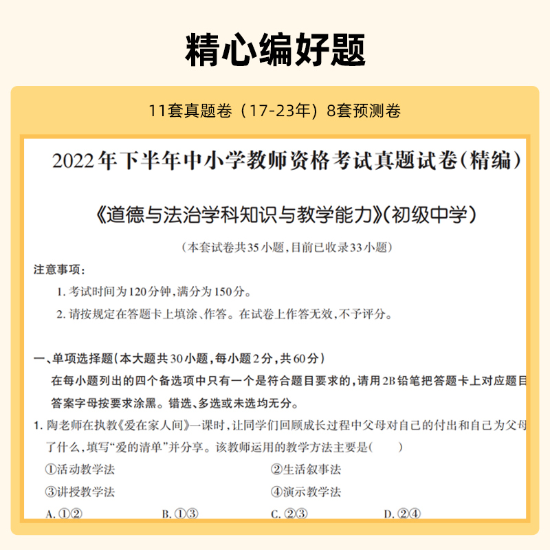 山香2024教师资格证思想品德学科知识与教学能力 初级中学教材及历年真题押题试卷初中政治初中政治