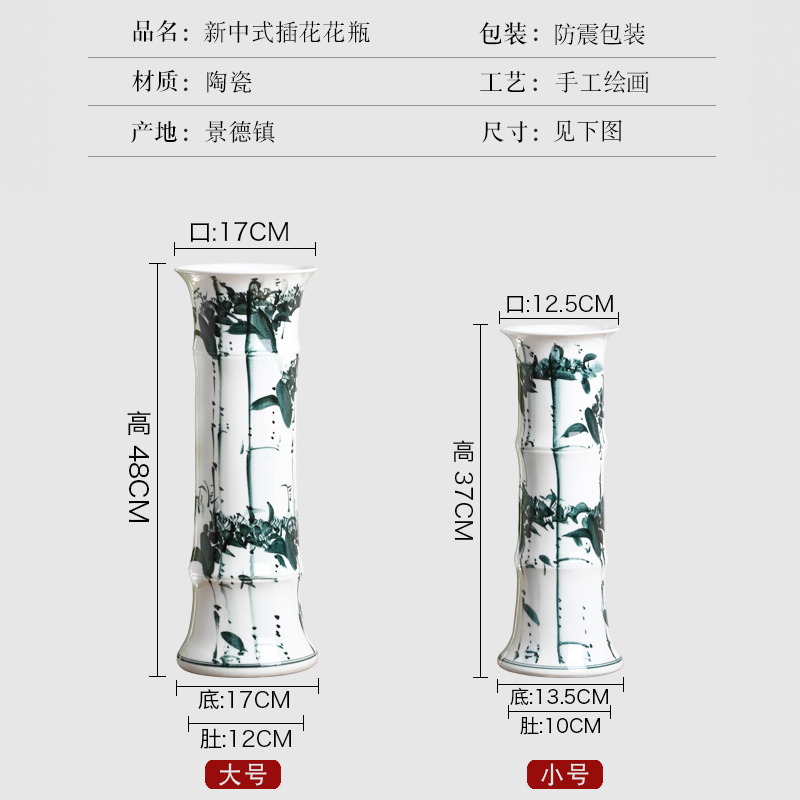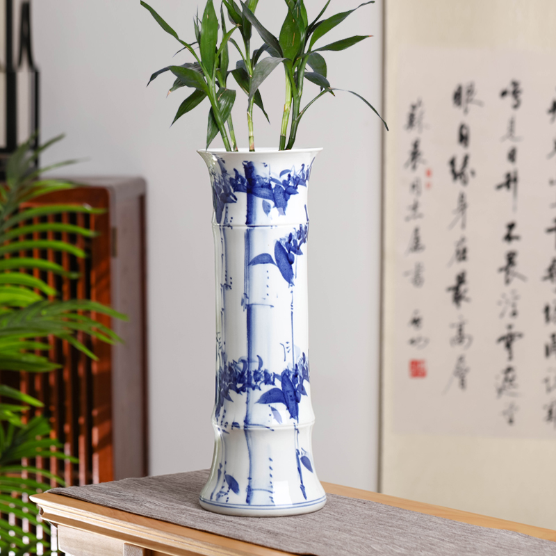 景德镇青花瓷富贵竹花瓶中式 古典复古风大号花瓶客厅陶瓷摆件插花