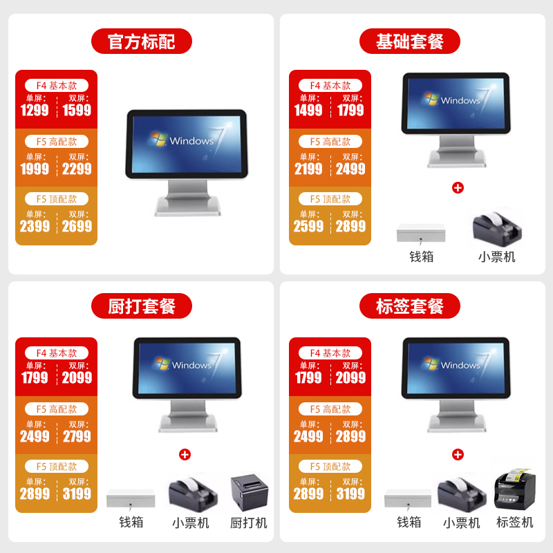 餐饮店收银机一体机扫码 机 点餐出点单菜面馆烧烤火锅饭店奶茶专用商用Windows7收银系统软件管理电脑双屏收款