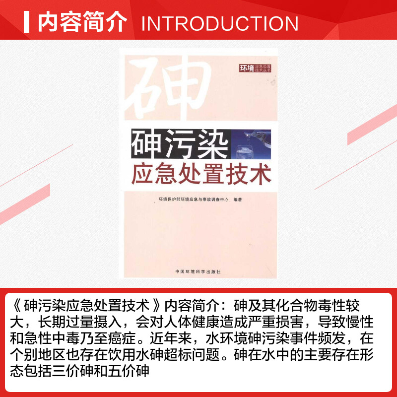 环境科学专业科技 著作 新华书店正版 图书籍 集团 砷污染应急处置技术 中国环境出版 环境保护部环境应急与事故调查中心