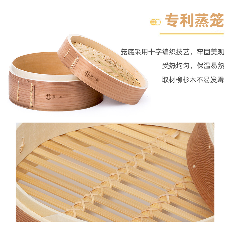 黄一府木蒸笼家用竹蒸笼小笼包蒸屉手编竹制笼屉蒸架商用加深