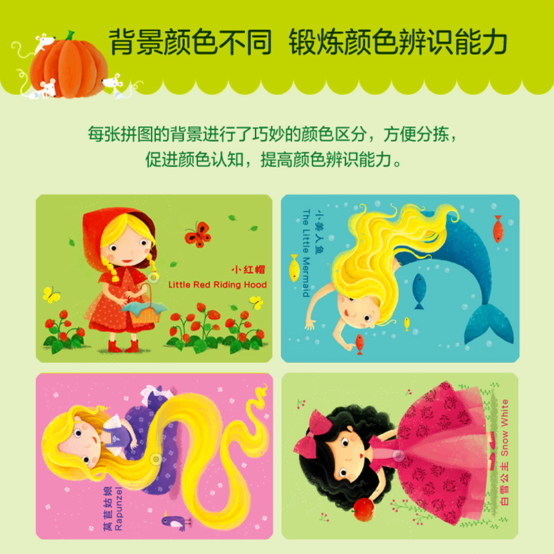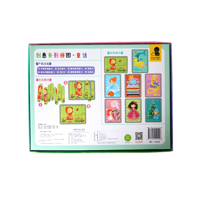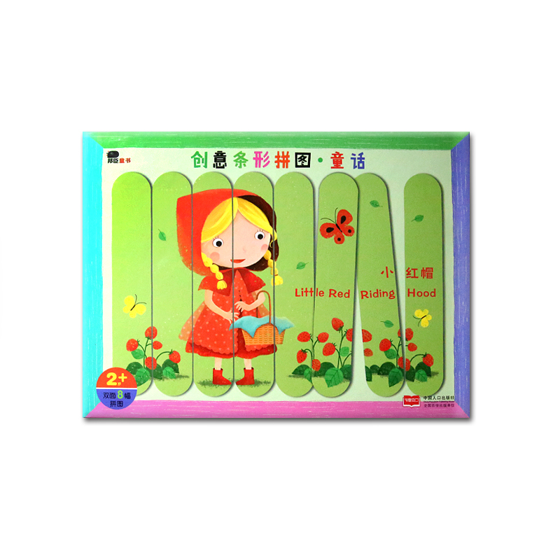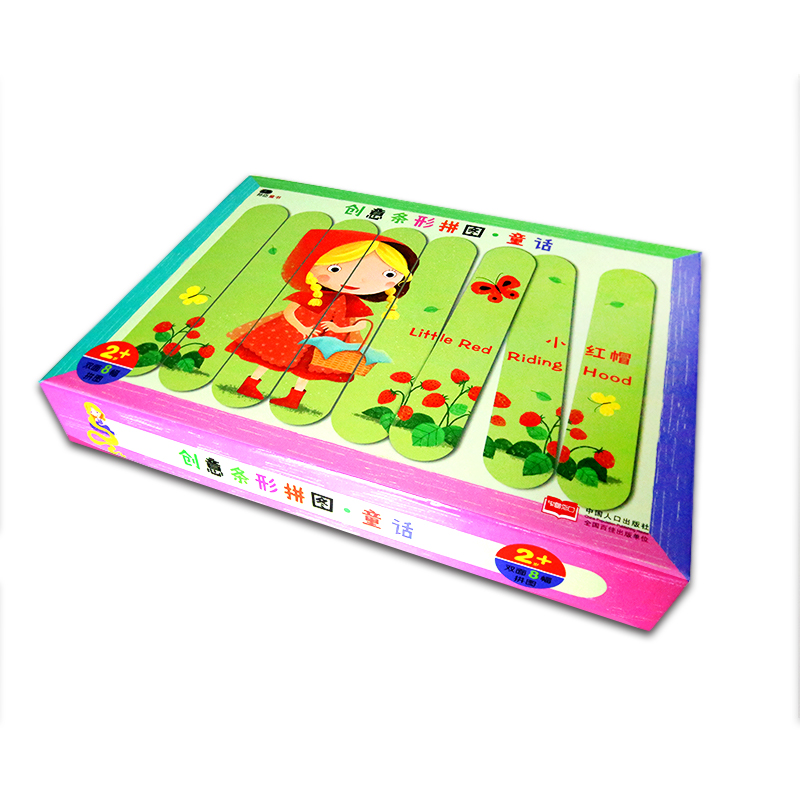礼物盒双面拼图简单版 小红花创意条形拼图童话男女孩拼图游戏童话故事场景拼图纸质拼板条状送给2 5岁孩子 提高动手能力