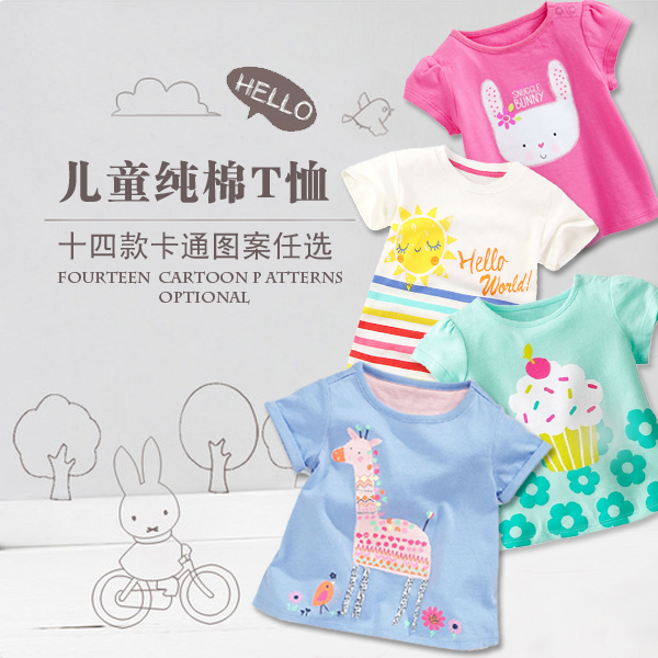 纯棉半袖 T恤 中小童时尚 卡通宝宝上衣婴儿装 夏季 打底衫 新女童短袖