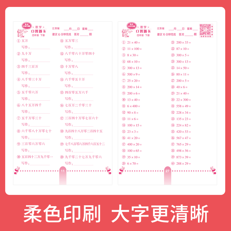 小学练习册 口算题卡 四年级下册 四4年级下册应用题天天练配套苏教SJ四年级 包邮 江苏版 小学四年级同步练习册 满15元