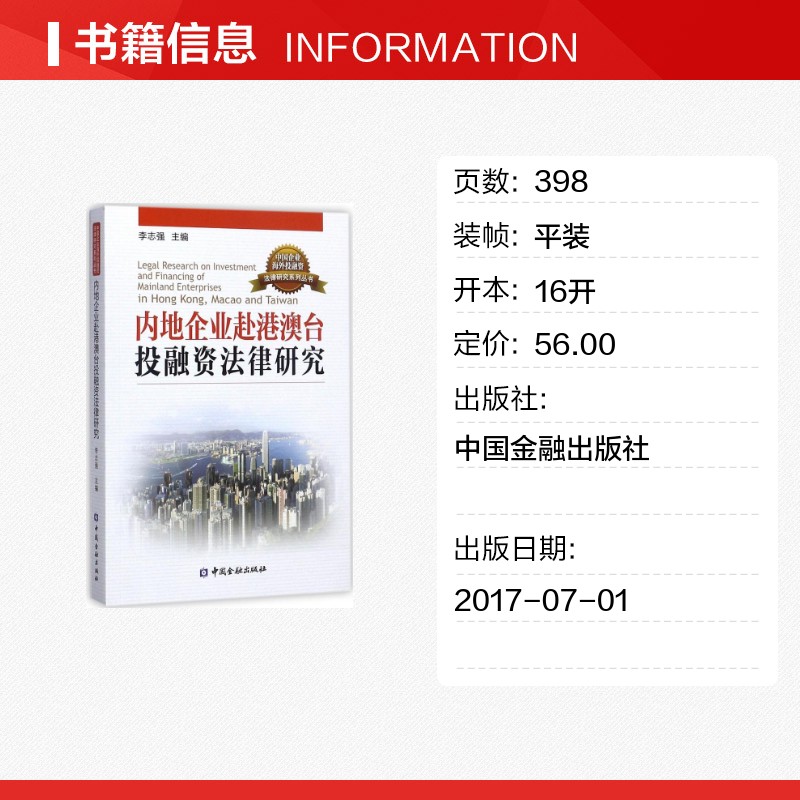 法学理论社科 主编 新华书店正版 图书籍 社 内地企业赴港澳台投融资法律研究 中国金融出版 李志强