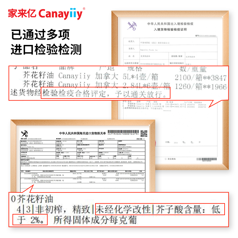 Canayiiy加拿大进口芥花籽油5升食用油低芥酸菜籽油家用