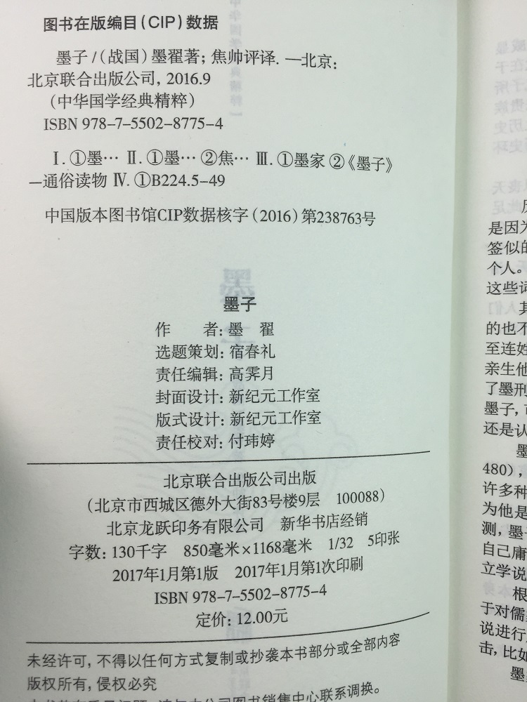 中华国学经典 精粹 口袋便携书精选国学名著典故传世经典 包邮 北京联合 译文文白对照解读 墨子 注释 正版 原文